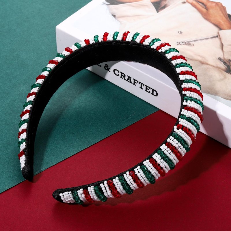 - ღ Christmas Headbands -- Decorate your coiffure with this beautiful padded headband. Features soft velvet padded hair hoop and rows of seed beads and sparkling rhinestones embellishments for a dazzling look, elegant and chic, easily keep you sparkling all through the night on party season