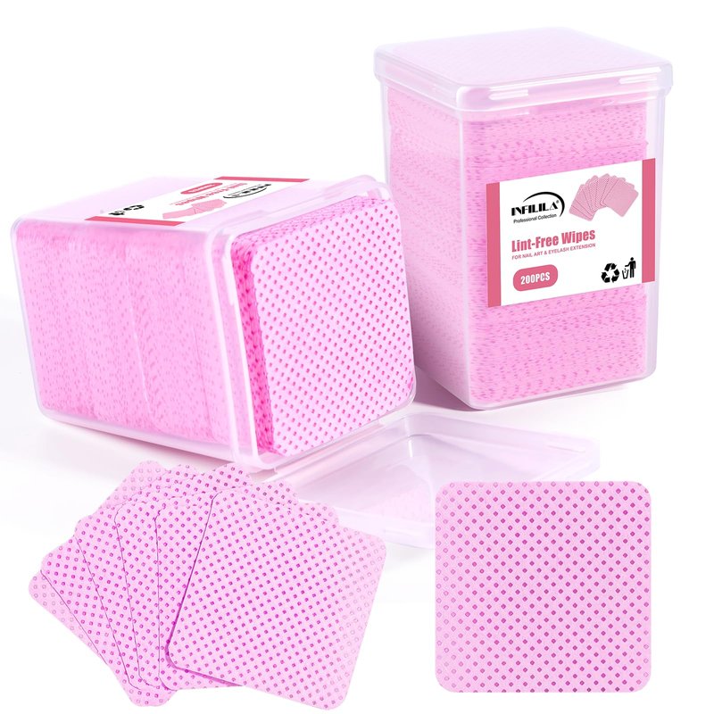 - SAFE AND HYGIENIC, EASY TO STORE: You will get 2 boxes of 400 pink square lint-free nail wipes. The special non-woven fabric ensures lint-free cleaning. A durable plastic case protects the wipes from falling apart after opening and is sealed to keep the wipes clean. The box size is suitable for traveling and carrying and can be reused to hold other supplies. Ample quantity of wipes to meet daily needs.