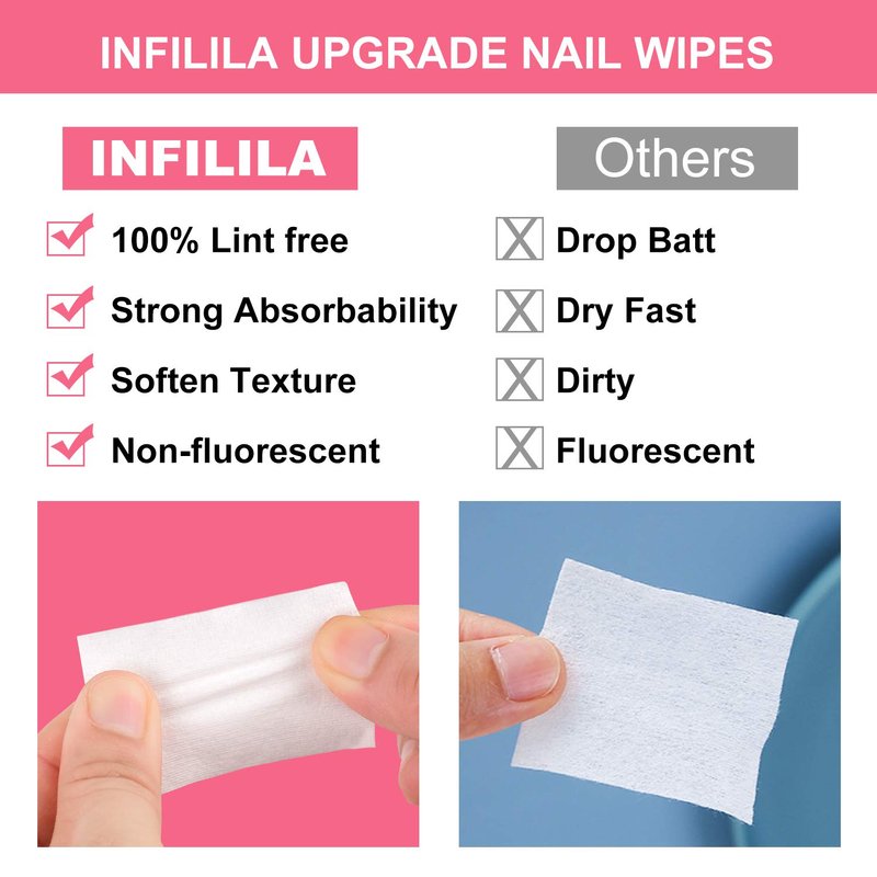 - >UPGRADE & SUPERIOR QUALITY & FLUORESCENT AGENT FREE:NXJ INFILILA UPGRADE nail wipes are made of natural real wood pulp and Polypropylene produced by special processing,without adding any fluorescent agent,safe to use it at home & nail art salon.