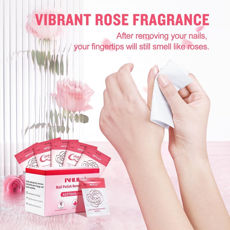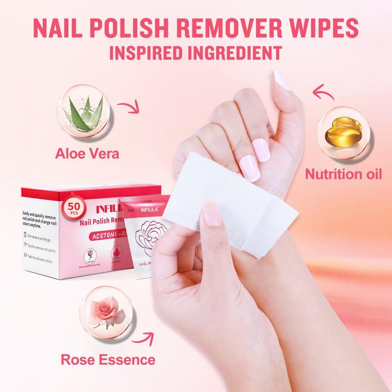 50PCS NXJ INFILILA Nail Polish Remover Wet WipesNail Polish Remover Wipes help remove nail polish whenever and wherever you desire. Easily and quickly remove nail polish and change nail colors anytime. AVAILABLE SIZES AND PACKSThe package includes: 100 Wipes.Wipe Size: 3.54*3.54inchFITS INTO YOUR POCKETThese pocket-sized travel wipes are individually sealed to carry and use anytime.GREAT VALUE FOR MONEYOur great value box pack contains 50 wipe, perfect for professional salon or at-home use. Suitable for use not only on fingers but works great on toes too!