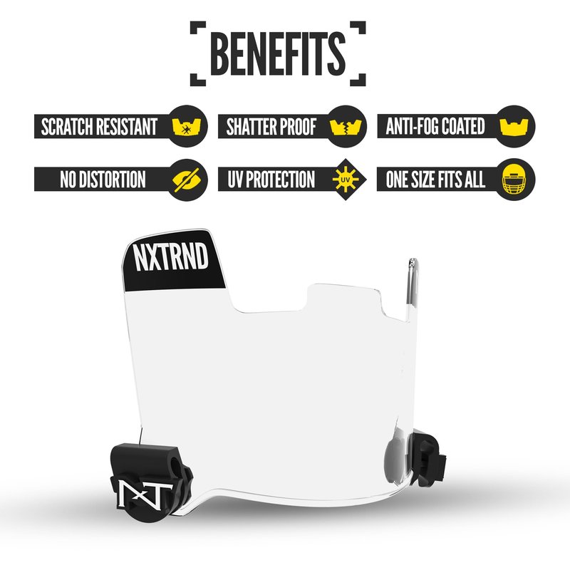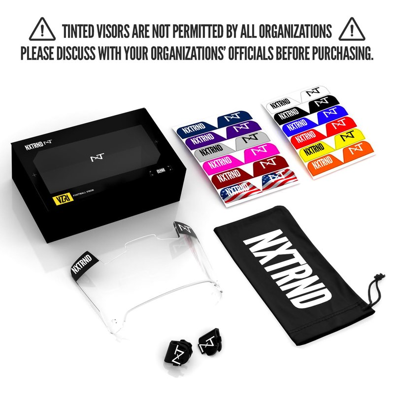 NXTRND Football Gear: Provides Antifog face mask as well as clear shield face mask made for predator helmet. Built from the ground up, NXTRND has quickly become one of the leading football accessories brands. Professional and safe visor face shield provided by our advanced football equipment research team. Thousands of satisfied kids football players and counting. Football stuff: We have engineered a one of a kind custom football face mask that can be safely and effectively worn on Helmets for adults & youth football helmet. Instant football visors for helmet. Our face shield visor has been designed to prevent damage to your eyes, lips, arches, jaw and teeth. Universal fit: The ready to use face shield anti fog ensures easy fitting on Riddell speedflex helmet. One size fits all. Comfort technology: Designed to perfectly fit most adult helmet and kids football helmet, our clear face shield come equipped with football visor clips . Professionally manufactured in a controlled environment. NXTRND is a leading manufacturer of high school football gear, football mask, black visor, visors for men, eye black, football gloves youth, football gloves men, football mouth guard. Necessary precautions are our top priority. Micro fiber cloth is included in the clear shields face visor eye kit. Dedicated response team: At NXTRND, we believe in our tinted face shield for football helmet youth products. That’s why we back our football visors for sports with a satisfaction guarantee mindset and provide friendly, easy-to-reach support.