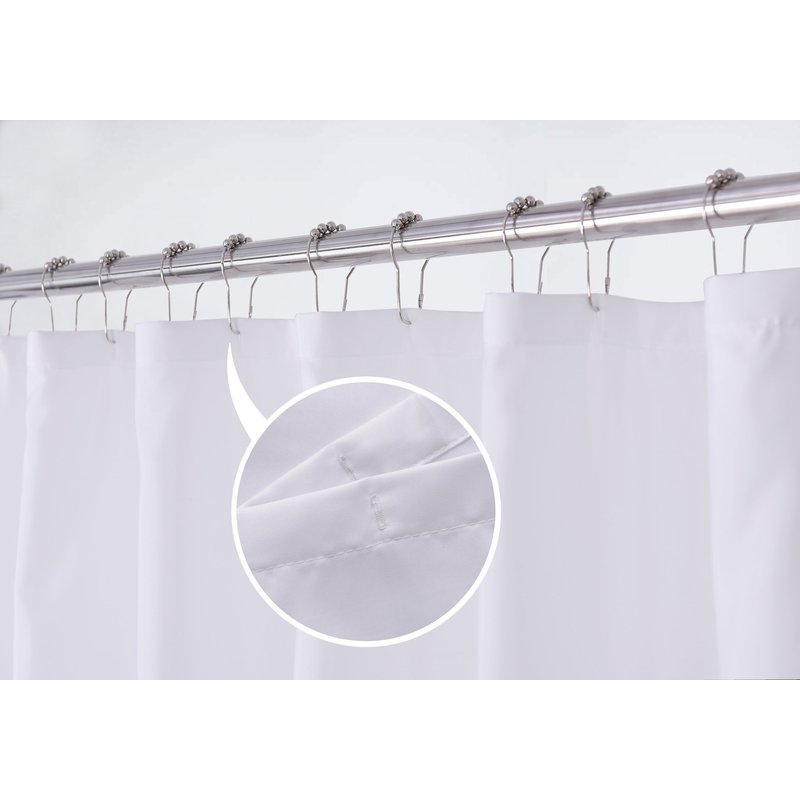 - *DURABLE and LONG LASTING: Reinforced top header with 12 button holes prevents from tearing and promotes the shower curtain liner long lasting. 2 magnets on bottom corners