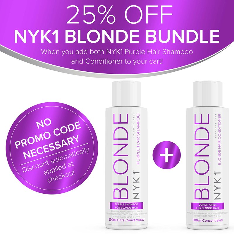 4. Finally, condition with NYK1 Purple conditioner to deeply nourish and colour protect. Leaves hair silky soft, manageable, shiny and smoother for longer. A great purple sulfate free shampoo and conditioner for blonde hair combo.
