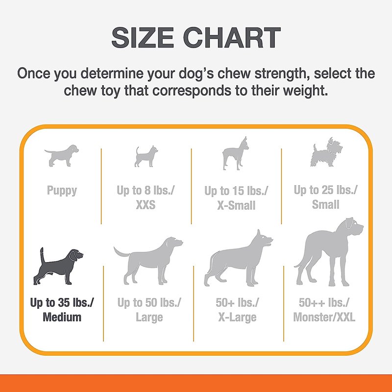 - FOR MEDIUM PUPPIES - Size Wolf chew toy intended for pups up to 35 pounds