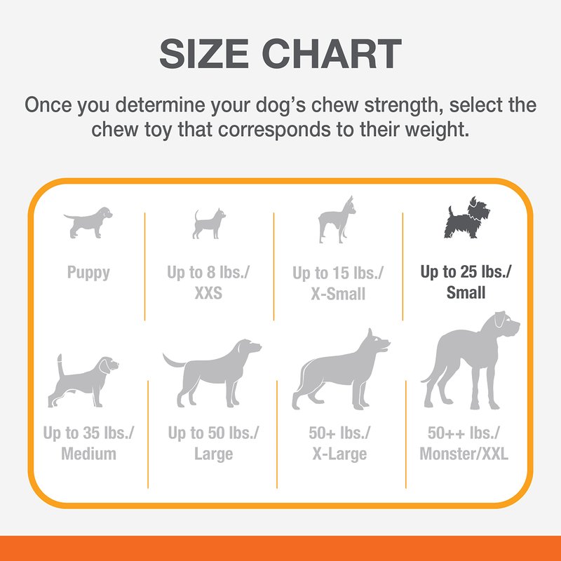 - FOR SMALL DOGS - Size Regular chew toy intended for dogs up to 25 pounds