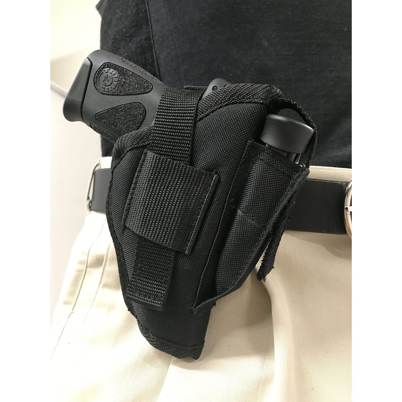 Gun Holster Offers: *Ambidextrous - Use Left or Right Handed - Switch Thumb Retention Strap and Clip From Side to Side *Metal Clip * Adjustable Thumb Retention Strap to Adjust to Your Gun *Gun Magazine Pouch Made on Front To Carry An Extra Clip. Versatile gun holster at an affordable price. We offer 30 day money back guarantee. Need more information, please contact us and we will try to help size up the holster for your needs. Please Note: Verify the .380 you have. NOT ALL .380's are the same size. This holster is for the Shield EZ. This holster is NOT for the Bodyguard .380.