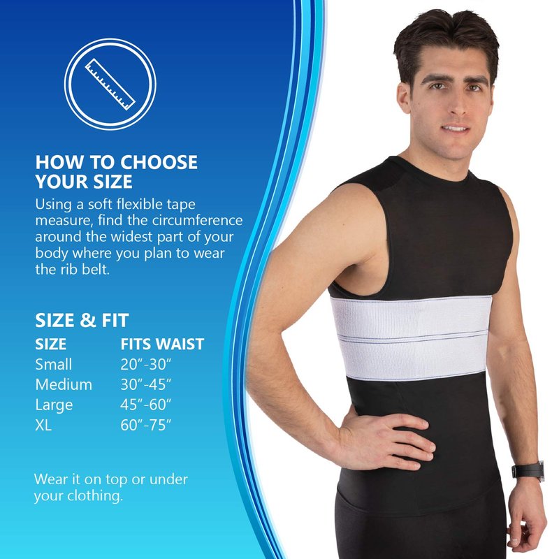 - HOW TO CHOOSE YOUR SIZE: Using a soft, flexible tape measure, find the circumference around the widest part of your body where you plan to wear the rib belt. 20-30 in. measurement fits “20-30 Inch”, 30-45 in. measurement fits “30-45 Inch”, 45-60 in. measurement fits “40-60 Inch”, 60-75 in. measurement fits “60-75 Inch.” Wear it on top or under your clothing.