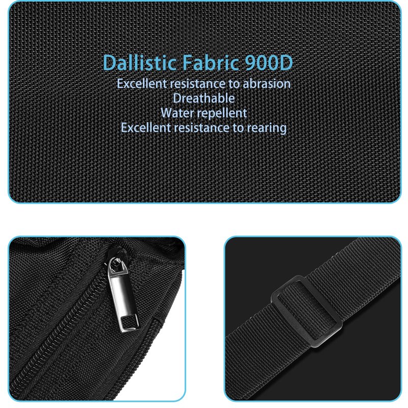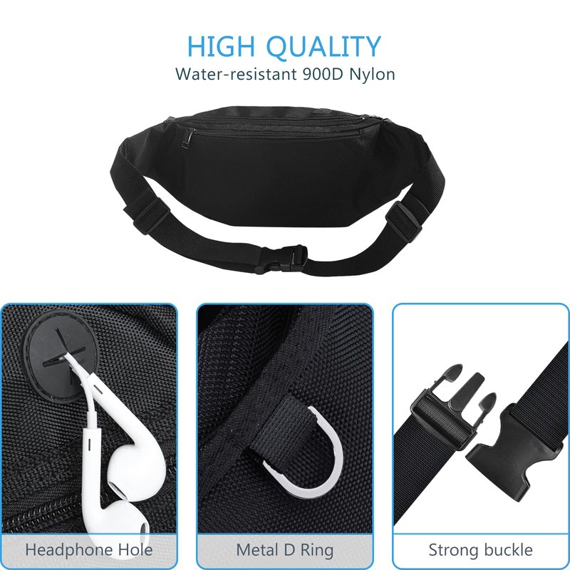 - HIGH QUALITY MATERIAL: : Made of Water-resistant 900D Nylon, exquisite overall craftsmanship with cleanly finished seams, this waist bag is scratch-resistant, sturdy, built to last and pliable. Dimensions: 12x6x4.5 in Weight: 0.59 pounds;