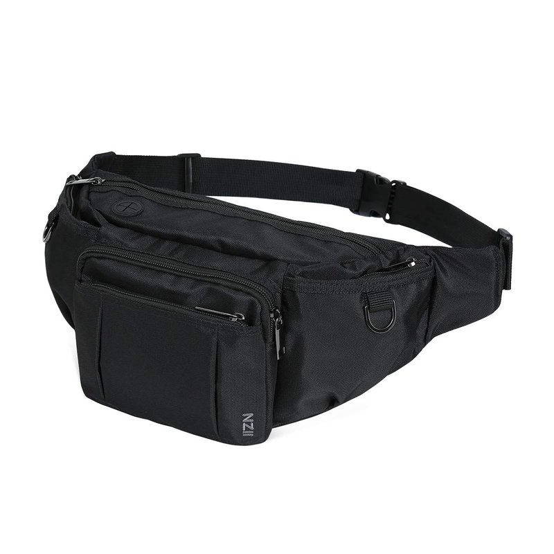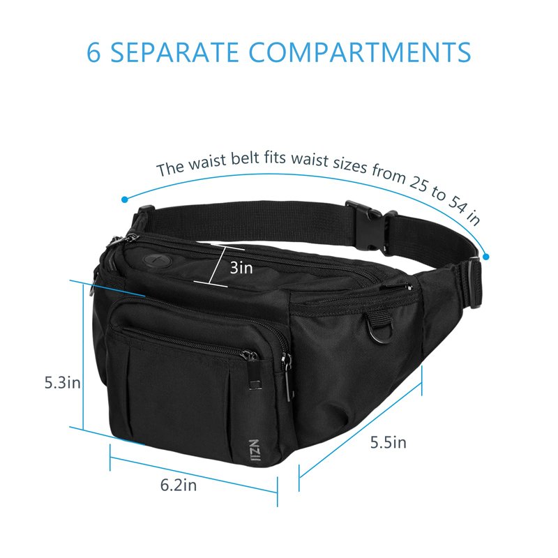 NZII Sports Fanny Pack for Men Women, Outdoor Waist Pack Bag with 6-Zipper Pockets, Super Capacity Bum Bag with Adjustable Belt for Traveling Hiking Running Workout Casual (small black)