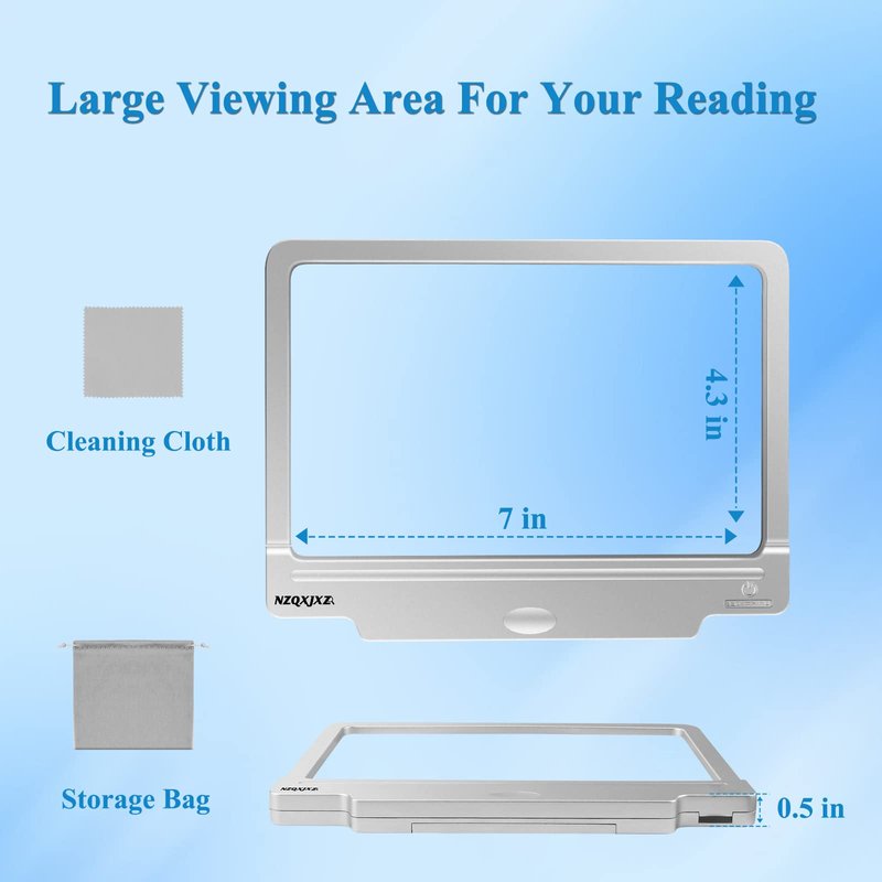 - Large Viewing Area: Our magnifier is specially designed to match the way the person reads; Viewing Area: 4.3 inches*7 inches