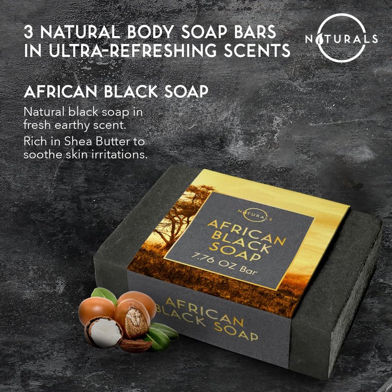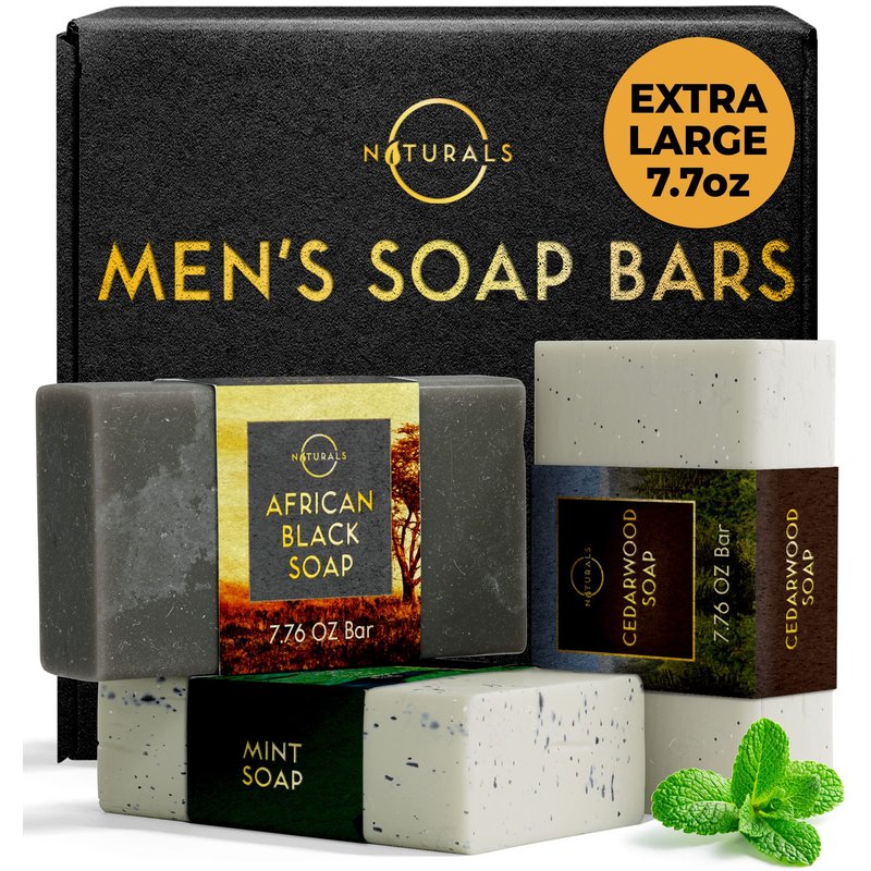 - For the Active Man - O Naturals' natural soap for men is a daily essential for active men ready to conquer the day. Our mens soap bar includes African Black Soap, Cedarwood Soap, and Mint Soap. Each organic soap is made with natural essential oils and delivers a masculine scent, leaving you refreshed and cleansed.