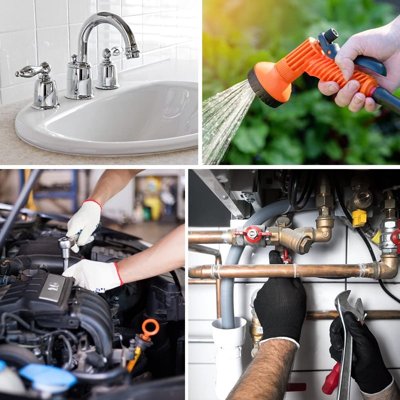 - [Application] : Used for faucets, plumbing, pipes, pressure washer, hose nozzles, sinks, filters, hydraulic oil, auto engines, machinery bearings, pumps, boats, oil, gas control valve, spray, air condition, kitchen, bathroom, water fitting seal leak repair etc.