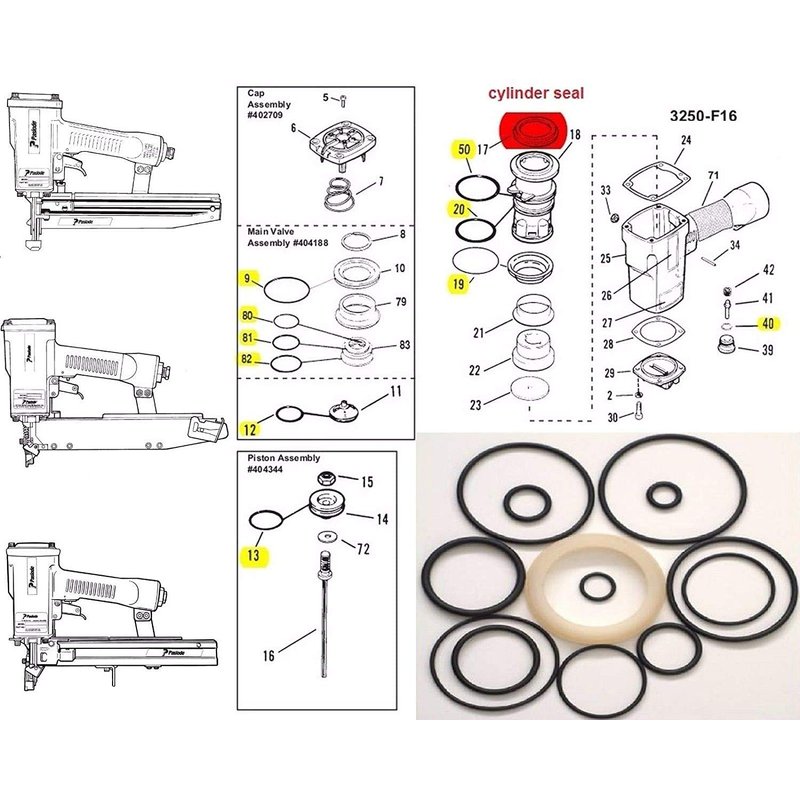 š Ring kit + Cylinder Seal #402725 to overhaul the Paslode 3250/F16 finish nailer.