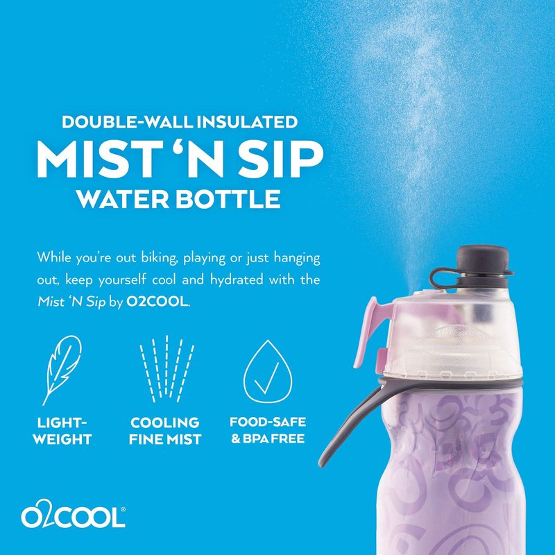 O2COOL Mist 'N Sip Misting Water Bottle 2-in-1 Mist And Sip Function With No Leak Pull Top Spout Sports Water Bottle Reusable Water Bottle - 20 oz (Yoga Lilac)