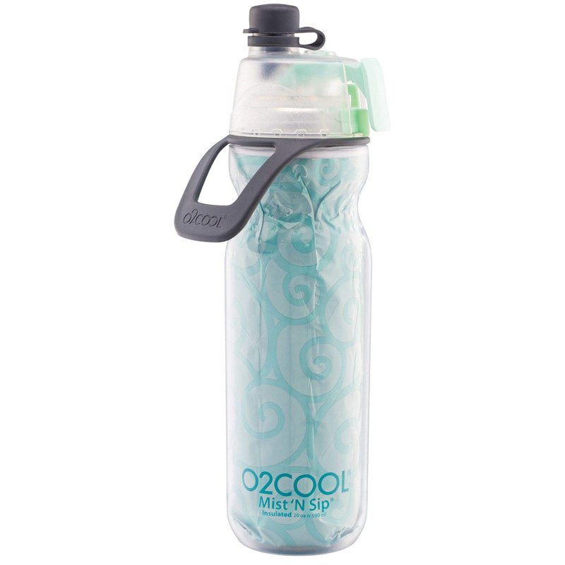 O2COOL Mist 'N Sip Misting Water Bottle 2-in-1 Mist And Sip Function With No Leak Pull Top Spout Sports Water Bottle Reusable Water Bottle - 20 oz (Yoga Mint)
