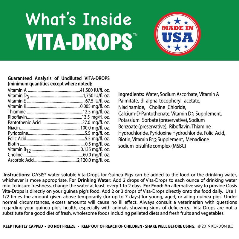 OASIS #80069 Guinea Pig Vita-Drop Vitamins, 16-Ounce liquid multivitamin with Vitamin C