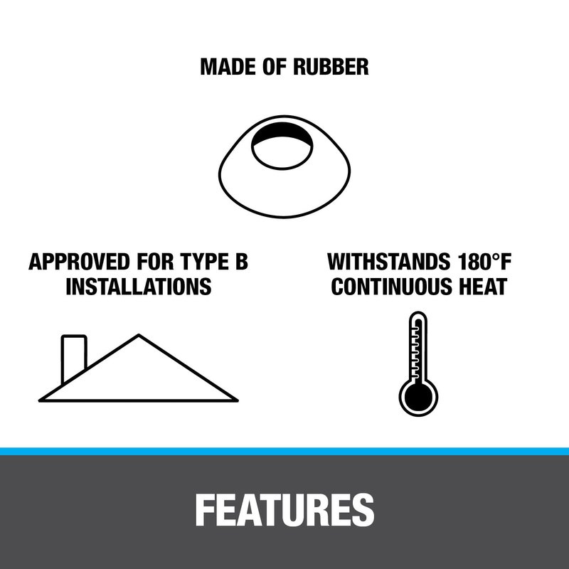 - Self-sealing, non-fading rain collar for 1-1/2 to 3 in. vent pipes