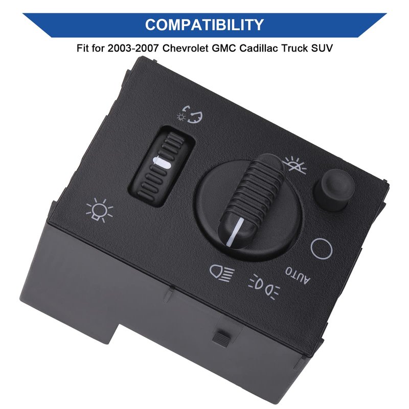 - 🚗【Compatibility】This automotive headlight switch compatible with Chevrolet Chevy Silverado, GMC Sierra model years 2003 2004 2005 2006 2007, Chevy Suburban/Avalanche/Tahoe, GMC Yukon, and Cadillac Escalade model years 2003 2004 2005 2006 .