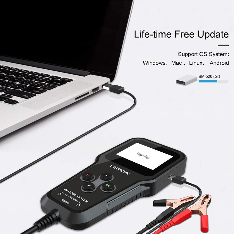 - 【Upgrade Worry-Free 】We offer life-time FREE update and Simple upgrade process: connect this battery tester 12v automotive to laptop via USB cable, copy and paste update files to removable disk to finish upgrade. [No device driver or update app installation needed]. Wide compatible operating OS: Windows/ Mac/ Linus/ even Android phone. 100% satisfaction guarantee, 3 years warranty.