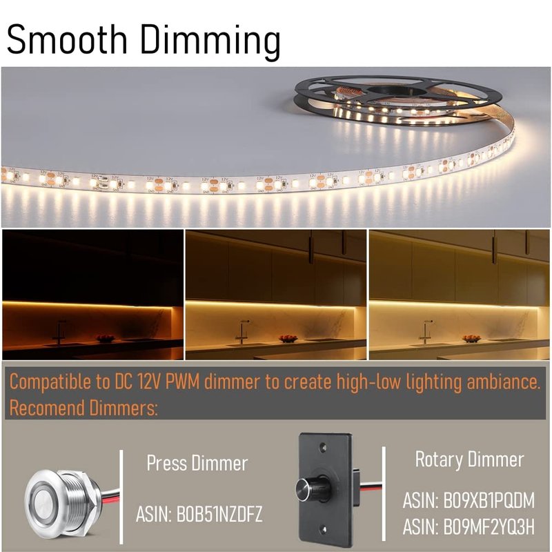 - Dimmable Strip Light - Works with DC 12V dimmer (need buy separately), you can easily dim or brighten your LED lights to your desired brightness level for various occasions