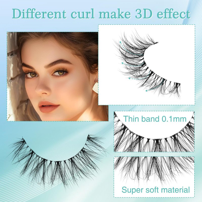- Lashes Pack: We have 5 different styles of false eyelashes for you to choose from, 5 pairs per package Natural False Eyelashes Clear Strips Natural Look With Eyelash Adhesive and Helping Tools.
