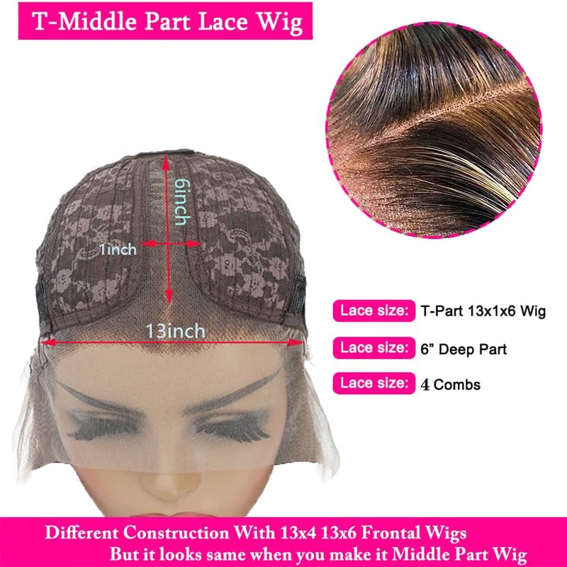 - Lace Size: T Part 13x6x1 Inch Lace Front Wigs, Swiss Lace Technology, Hand-Crafted Technology, Simulated Scalp, HD Transparent Lace Color(It's easy to get match to the color of the skin).