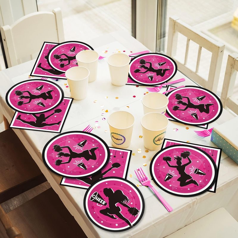 - 【Cheerleader Party Table Settings】These cheerleading party tableware kit can serve 24 guests, an enough quantity for a theme birthday party. These cheerleader party decoration kit will make your table settings look fantastic and all your guests will be happy.