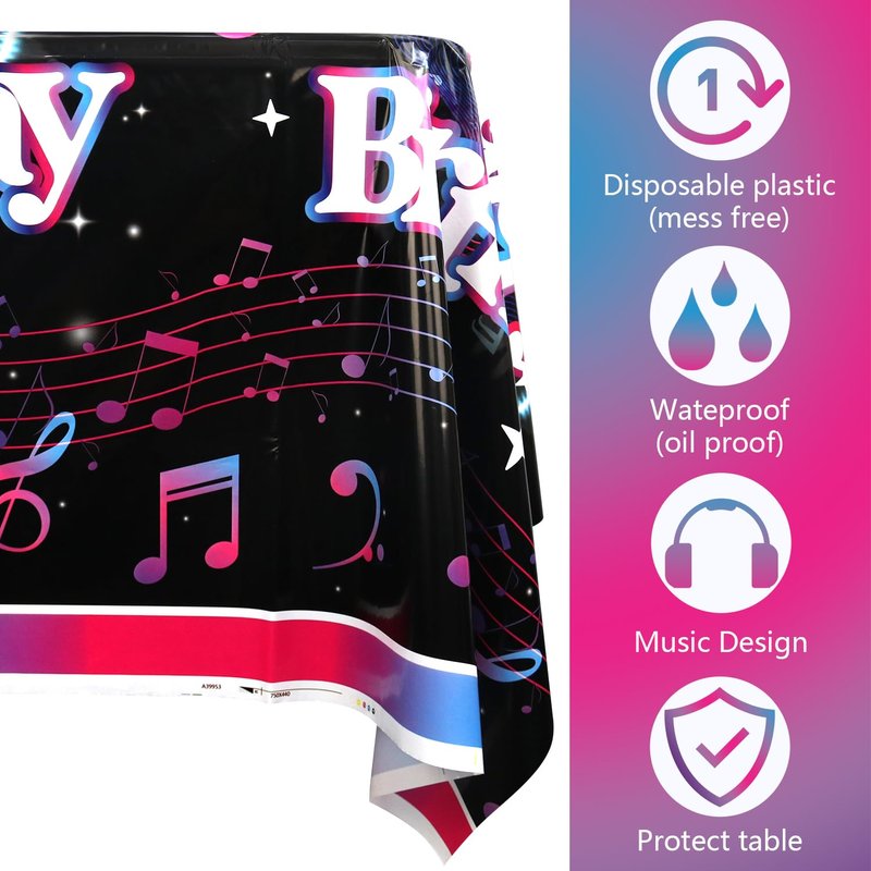 - Perfect Music Party Complement: These music birthday party tablecloths are the perfect addition to music themed birthday party decorations. They can perfectly match your other music theme party supplies, such as music party tableware,music theme banners, music backdrop, music theme party gift bags and boxes.