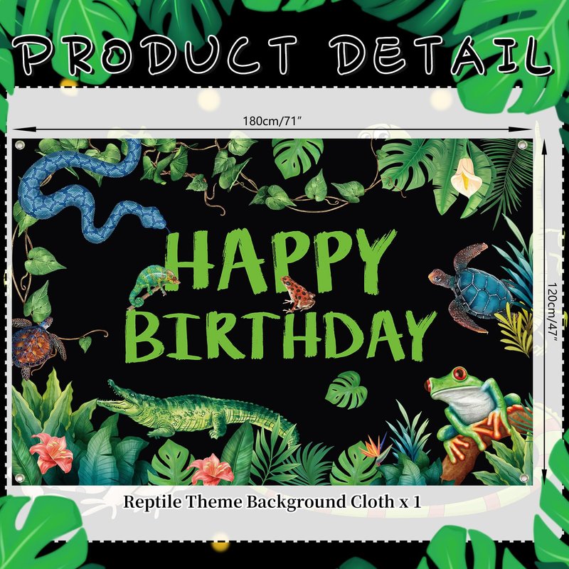 - Reptile Birthday Party Supplies: You will receive 1 reptile birthday backdrop measuring 180x120cm/71x47 inches.