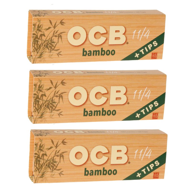 OCB - Bamboo 1 1/4"Rolling Paper & Tips - 3 Booklets with 50 Leaves per Booklet