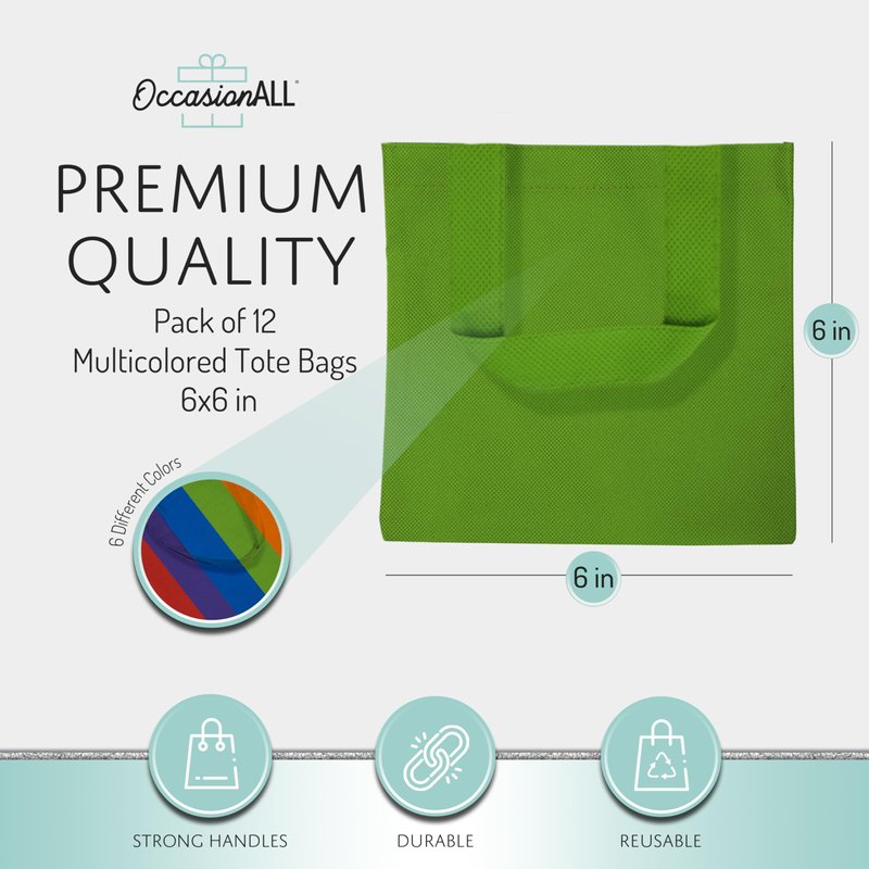 OccasionALL 6x6 12 Piece Multi Color Small Canvas Gift Bags with Handles, Reusable Bags, Party Bags, Bags for Gift Tiny Tote Bag for Candy Favors Gift