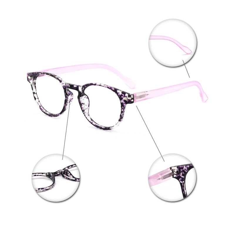 - DURABLE&LIGHTWEIGHT:Reading glasses women, textured acetate frame, durable and do not fade. High quality plastic temple and acrylic lenses, lightweight and comfortable, no pressure on the nose.,this reading glasses using life is more than 3 years after 42356 times of elastic spring hinge test,the high elastic spring leg can prevent it clip your face.