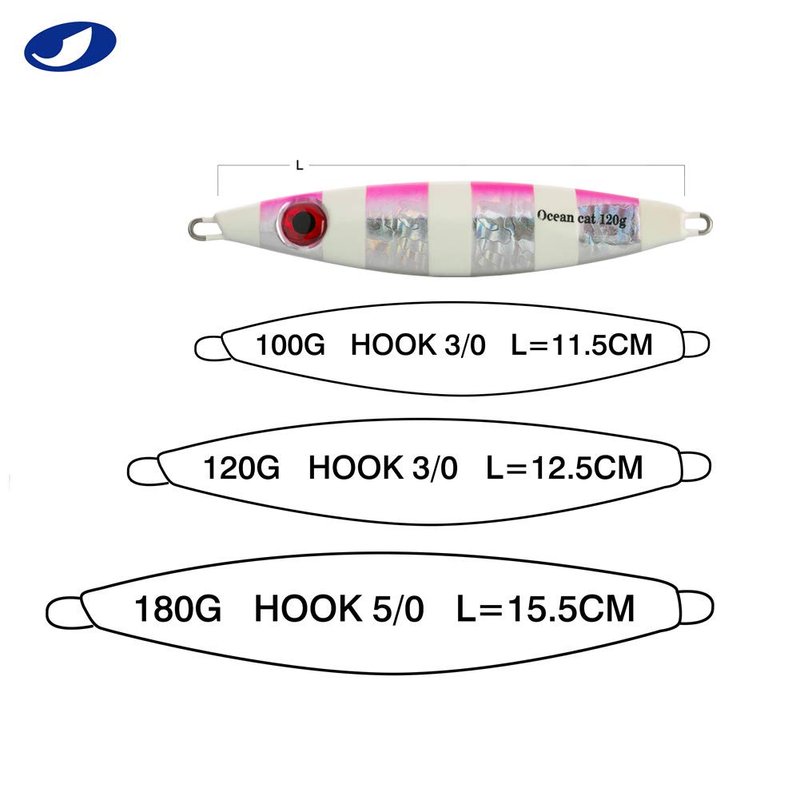 OCEAN CAT Fishing Lure slow fall metal jigs made by super 9T lead material, hard and difficult deformation.