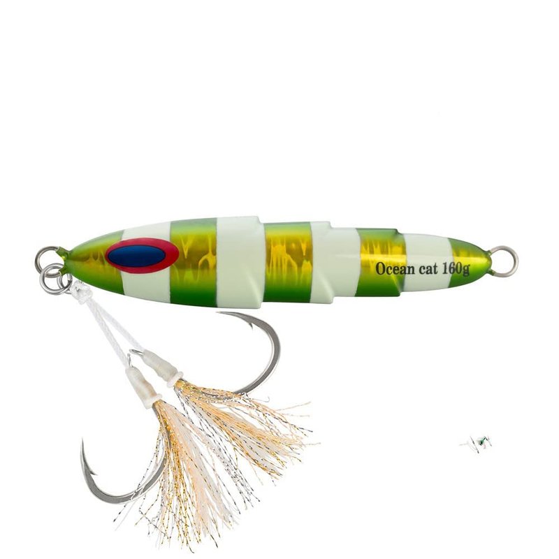 OCEAN CAT 1 PC Slow Fall Pitch Fishing Lures Sinking Lead Metal Flat Jigs Jigging Baits with Hook for Saltwater Fishing 5 Colors 80G/120G/160G/200G/250G/300G (Green&Gold, 120g(4 2/9oz))