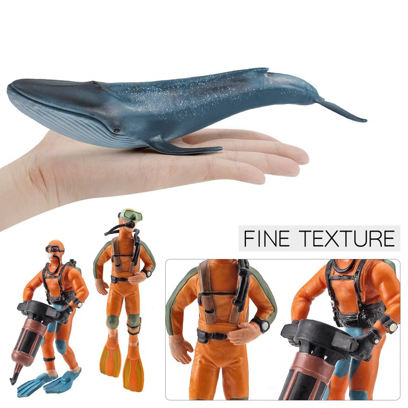 Ocean Sea Marine Animal Figure Toys Playsets 3 PCS Diver Blue Whale Model Toy Desktop Decoration Collection Party Favors Toys for Boys Girls Kids
