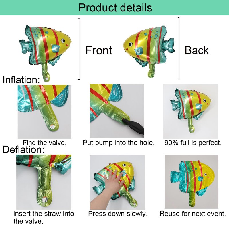 - The under the sea themed party decorations supplies 155pcs latex balloons(8colors, 4sizes), 10pcs different aluminum foil balloons(including seahorse dolphins lobster octopus starfish crab fishes), 16.4ft plastic strip, 32.8ft curling ribbons, glue dots. The pack includes everthing you need and create a really full arrangement.