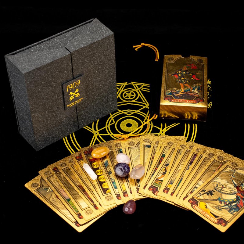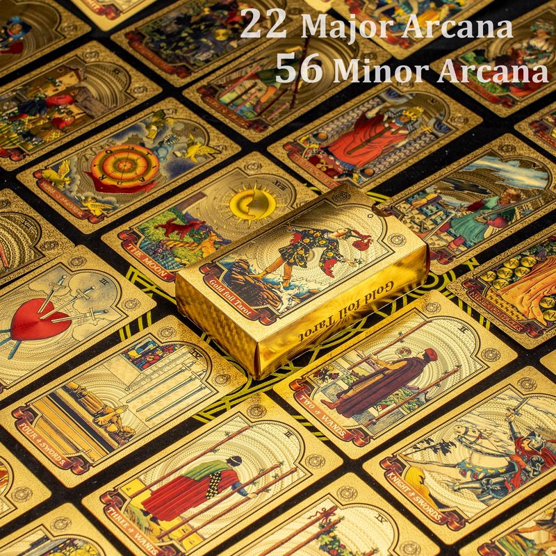 - 【Foil Durable Material】Tarot cards are made of gold foil PVC, which not only bends without damaging, but is also smooth without being scratched or leaving any scratches, and waterproof.The noble case is stored and not easily lost, so that every tarot lover can use it for a long time without replacing it.