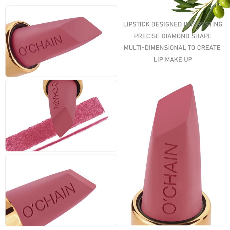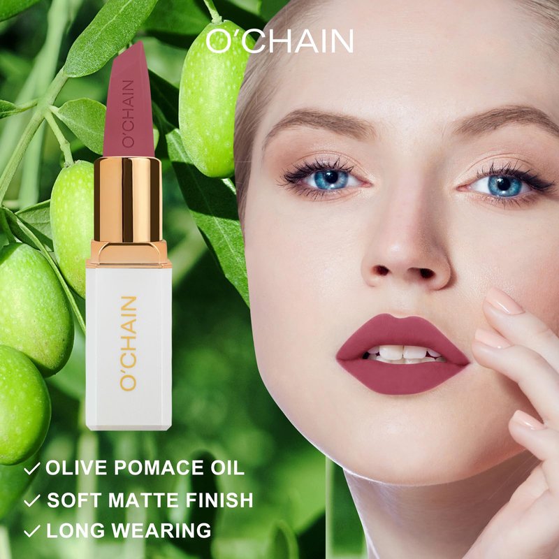 - Matte Lipstick Formula: O'CHAIN red lipstick is enriched with refined olive oil, jojoba oil, hyaluronic acid, and vitamin E. This combination provides nourishing, moisturizing, and antioxidant benefits, delivering a matte finish that won’t dry out your lips.