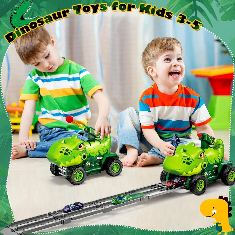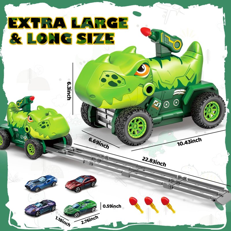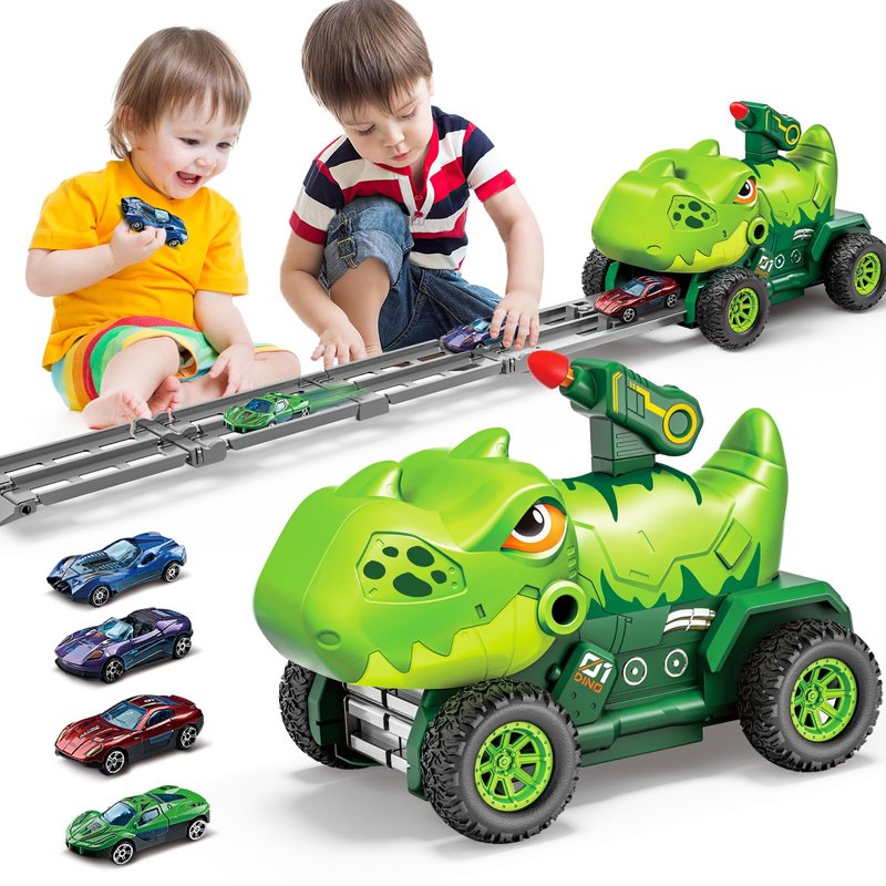 - Toys For 3 4 5 6 Years Old Boys:Our dinosaur truck toys including 1 truck and 4 mini die-cast race cars,and have catapult turret that launch foam rockets. The unique designed dinosaur transport truck vehicle is loved by kids.Perfect gift for boys and girls aged 3 years old and up for birthdays, Christmas, Easter, holidays, and any other special occasion!