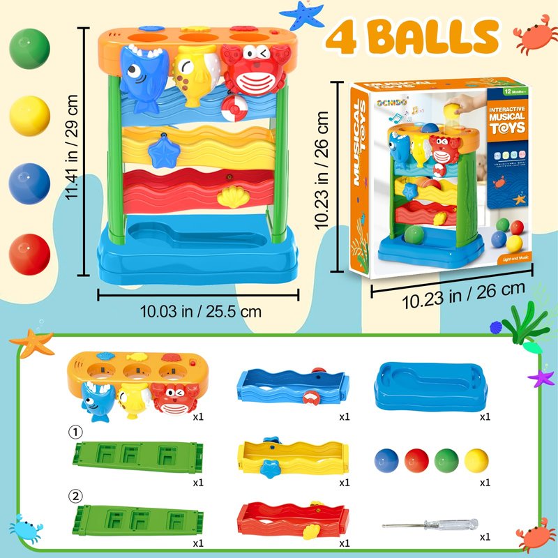 - Multifunctional Musical Toys : This musical toys featuries multiple phrases and songs and built-in vibrant light effects that flash with the rolling balls and adjustable music volum. In addition to feeding ball to trigger music, you can also play multiple popular music for baby through the 3 buttons above the hole. And there is a 2 volume level function for parents and protect baby's hearing. The perfect baby gifts 12 month, 12-18 month old