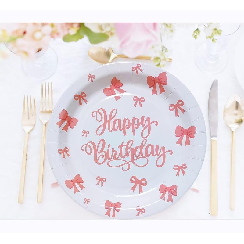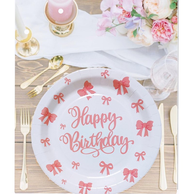 - These bow birthday plates are made of 350G white cardboard.Thicker than others