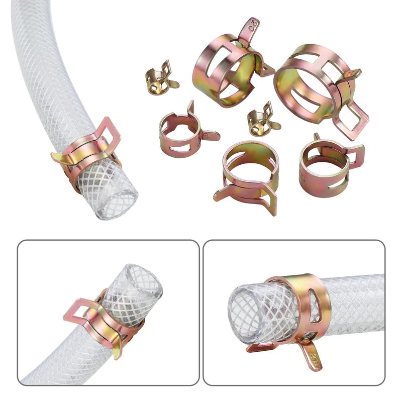 This high quality spring clips are made of durable 65Mn sprng steel,with 360 degree inner ring precision design,it prevents damage to pipeline effectively.Package includes 10 different size spring clips,which fit for most air hose tube, water pipe, fuel line silicone hose, as well as carburetors,engines and etc.