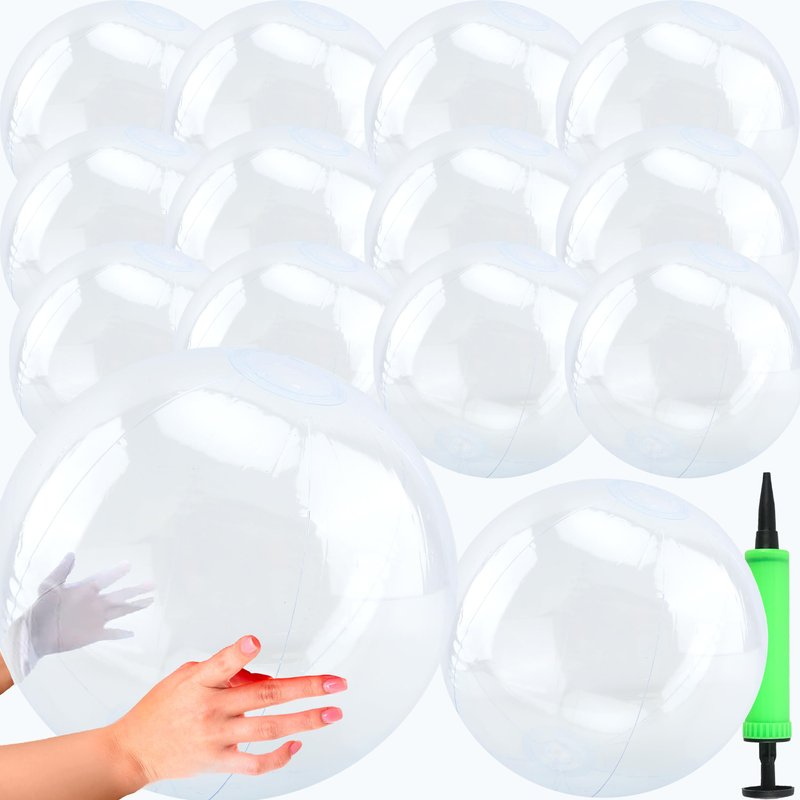 - 【What You Will Get】: You will receive 14 pieces of inflatable clear beach balls and an air pump. Enough quantity can easily meet your summer party game use, and you can send these big clear beach balls to your family members, partners, classmates, colleagues or neighbors on various occasions, bringing them a lot of joy this summer.