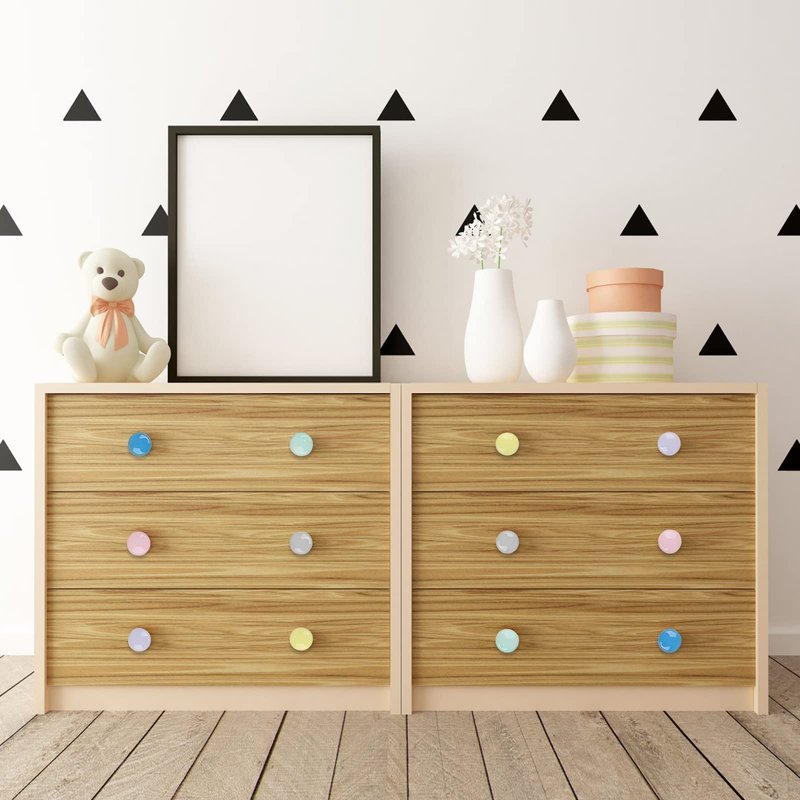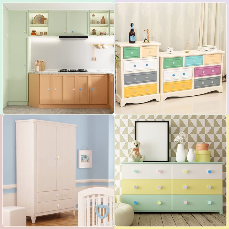 - Cute and Sweet macaron style looking colorful ceramic little door handles for bedroom wardrobes, cupboard doors, closet; A nice improvement for the kid's bedroom.