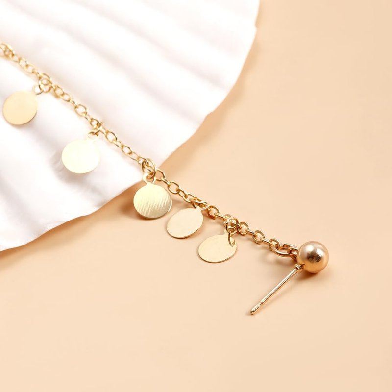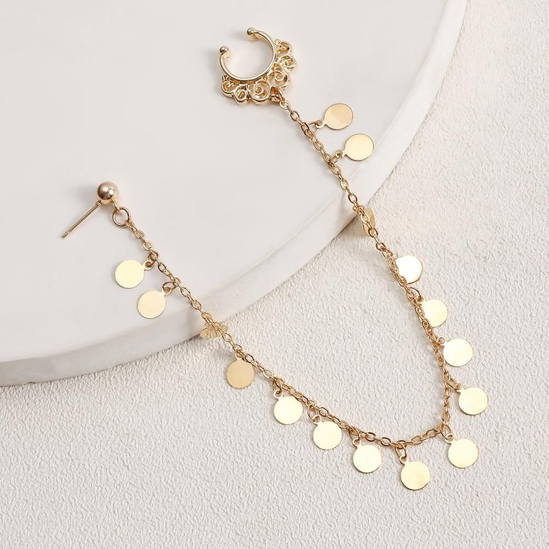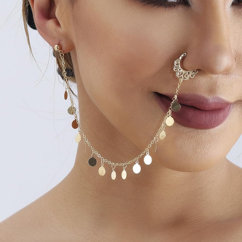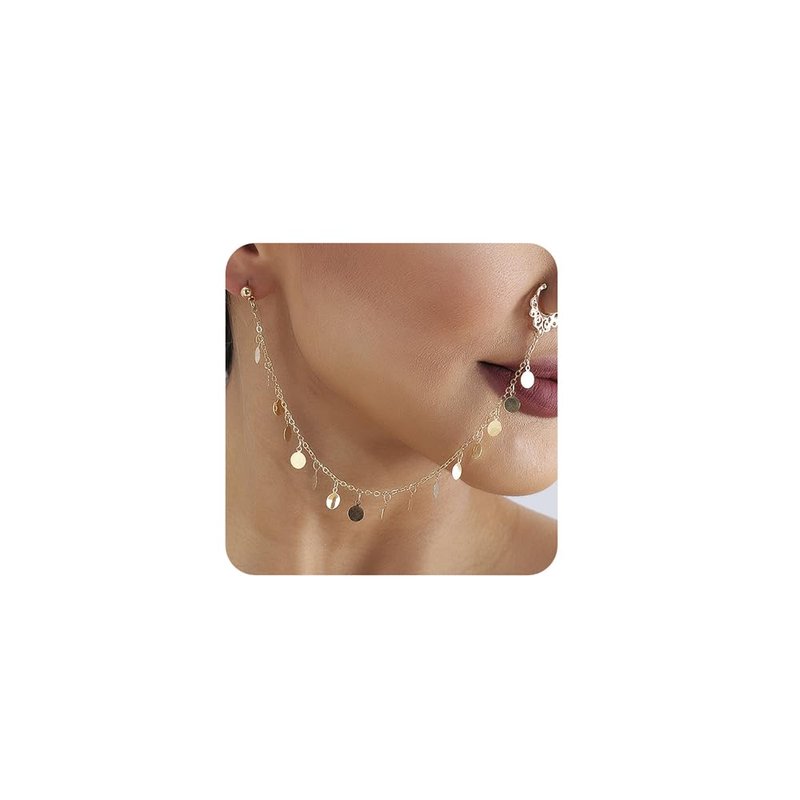 Octwine Women Tassels Nose Rings Earrings Chain Hoops Earrings Chain Fake Nose Ring Chain Non Piercing Nose Rings Earrings to Dangle Halloween Earring for Women (Gold Sequin)