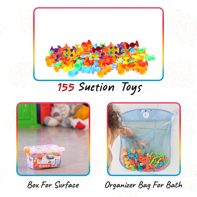 ODELA Genius Suckers 155Pcs Suction Toy Kids Sensory Toys – Baby Toy Suckers Building Toys – STEM Development Sucker Toys for Kids – Colorful Suction Toy for 3 Year Olds – Interactive Bath Toy Set