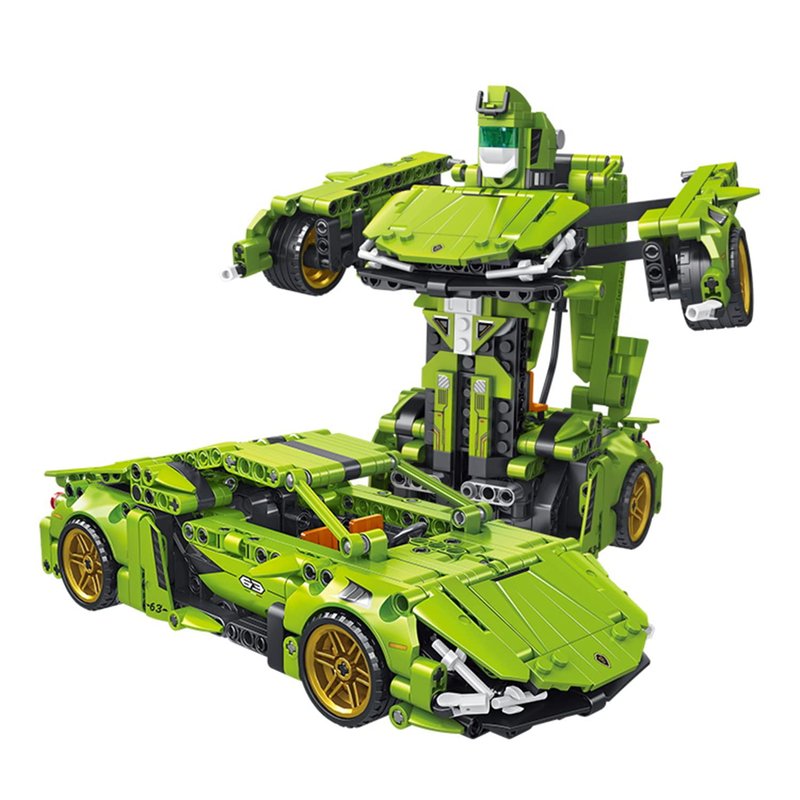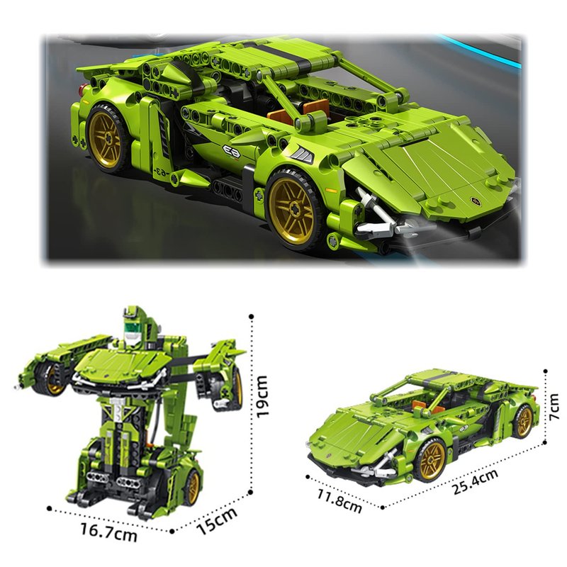 - The building blocks car set is 2 in 1 double mode which means you can transform racing car into a big robot. Easy conversion for kids 6 years old and up. Challenging this cool car model can improve kid’s logical thinking, patience and teamwork skills.