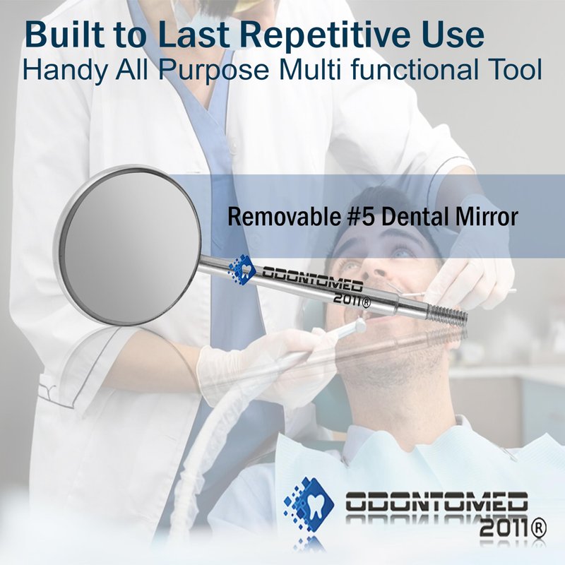 - MATERIAL: Mirror encased in rugged corrosion resistant brushed stainless steel. Handle is made of 100% stainless steel which is durable and completely safe for your dental during long use.