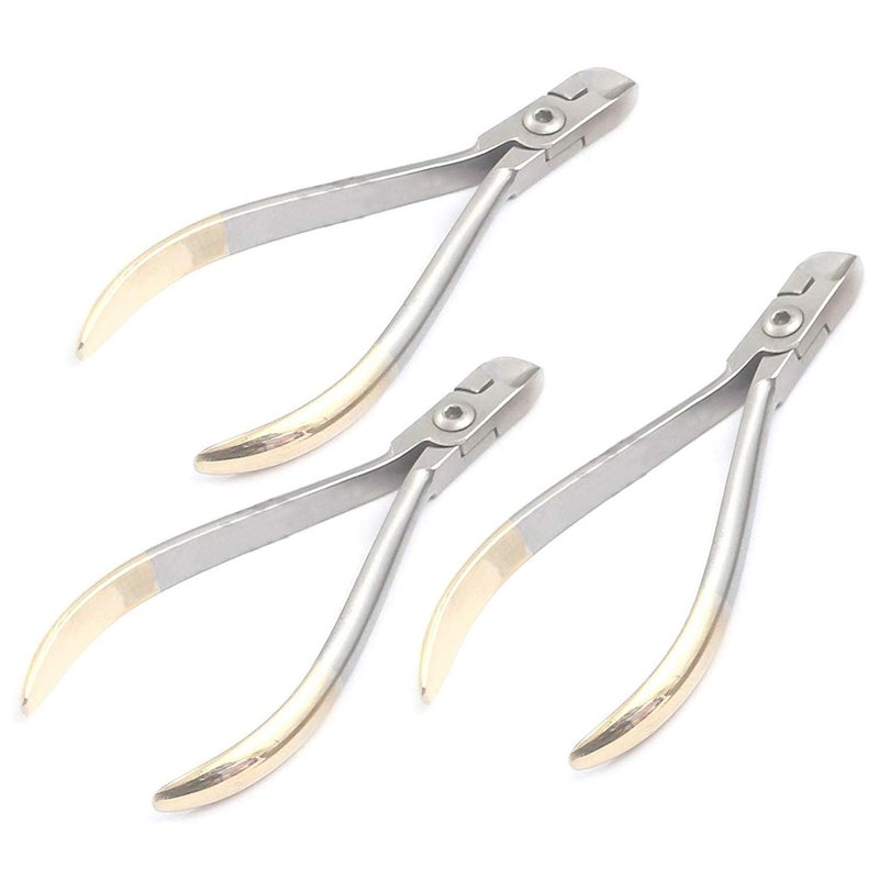 Lot of 3 Pieces Hard Wire Cutter Plier Tc Tip Dental Standard Distal Set Orthodontics Pliers in orthodontic dentistry hard wire cutter. Made in high stainless steel. Capability of cutting ligatures at the tip. Designed to cut hard wires up to .022" x .028". 15° offset tip enhances access in difficult areas. Stainless steel high quality !!! Odontomed2011 instruments