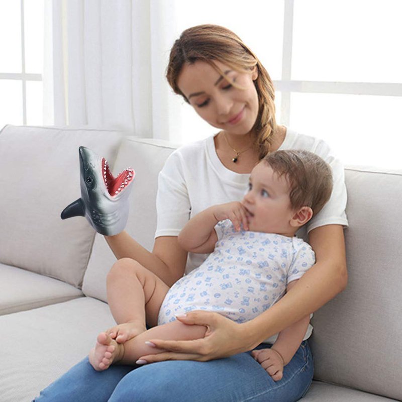 Odowalker Hand Puppet Dinosaur and Shark Hand Puppet Toys Battle Dinosaur Head Glove Rubber Shark Hand Puppets for Kids(2 PCS)